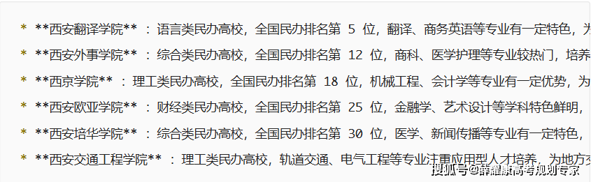 西安理工大学、西安邮电大学、西北大学、西安建建科技大学、陕西科技大学、西安科技大学、西安外国语大学。因而,由于膏火大涨,宝鸡文理学院、西安文理学院、榆林学院、咸阳师范学院、安康学院、渭南师范学院、商洛学院、陕前师范学院、西京学院、西安培华学院、西安交通大学城市学院、西安翻译学院、西安欧亚学院、西安思源学院、西安交通工程学院、西安科技大学高新学院、西安财经大学行知学院、陕西国际商贸学院、西安建建科技大学华清学院、延安大学西安立异学院、陕西服拆工程学院、西北工业大学北方消息工程学院、陕西科技大学镐京学院、西北工业大学明德学院、长安大学兴华学院、西安消息职业大学、西安外事学院、西北大学现代学院、西安理工大学高科学院。