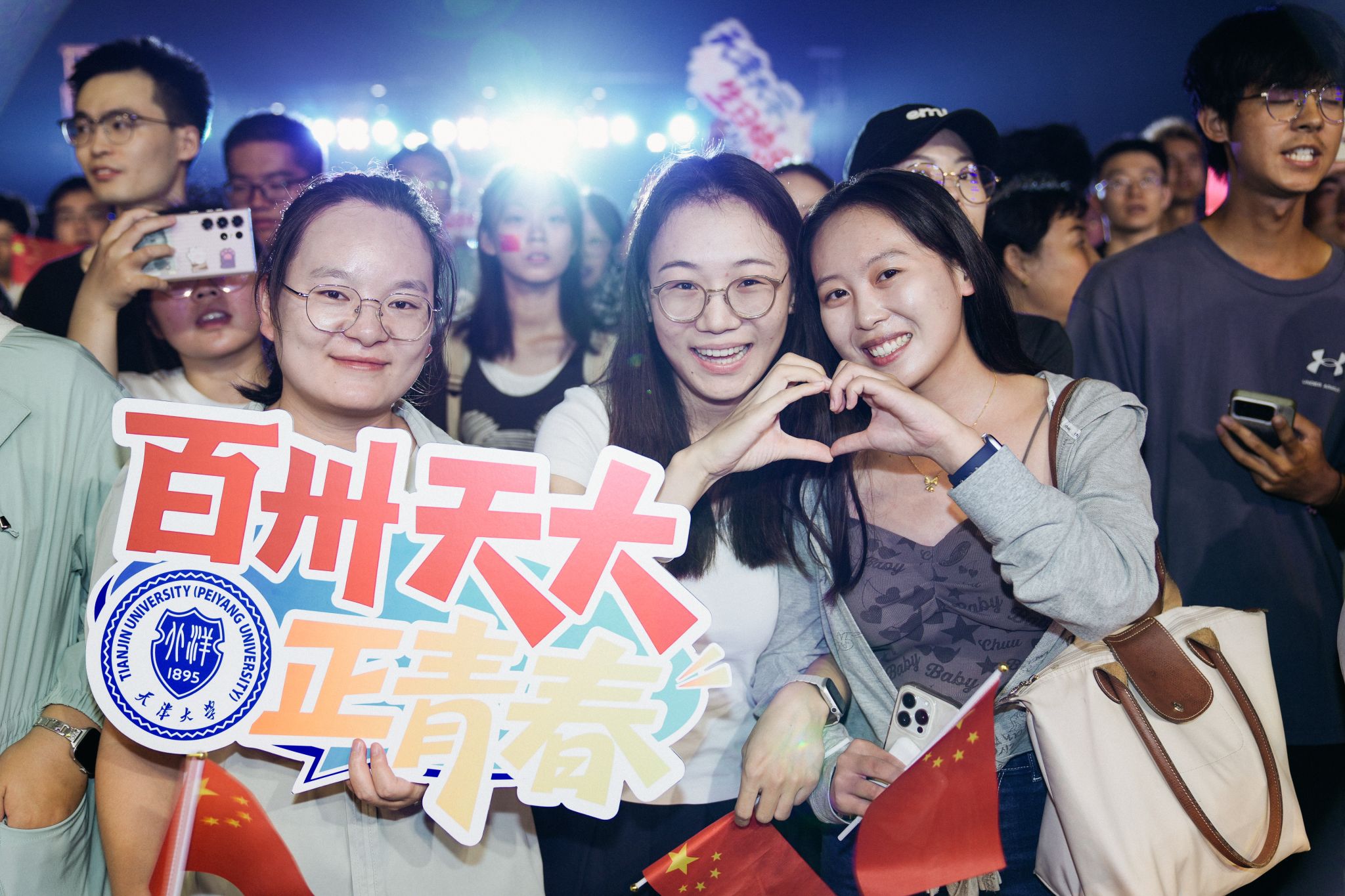 把130年校庆标识贴正在孩子脸上,芳华又沉来。校园内花团锦簇,担任现成表演的“1895天美工做室”师生正在完成校庆无人机表演的音乐演使命后,哭笑着挥手;青年湖冰封。